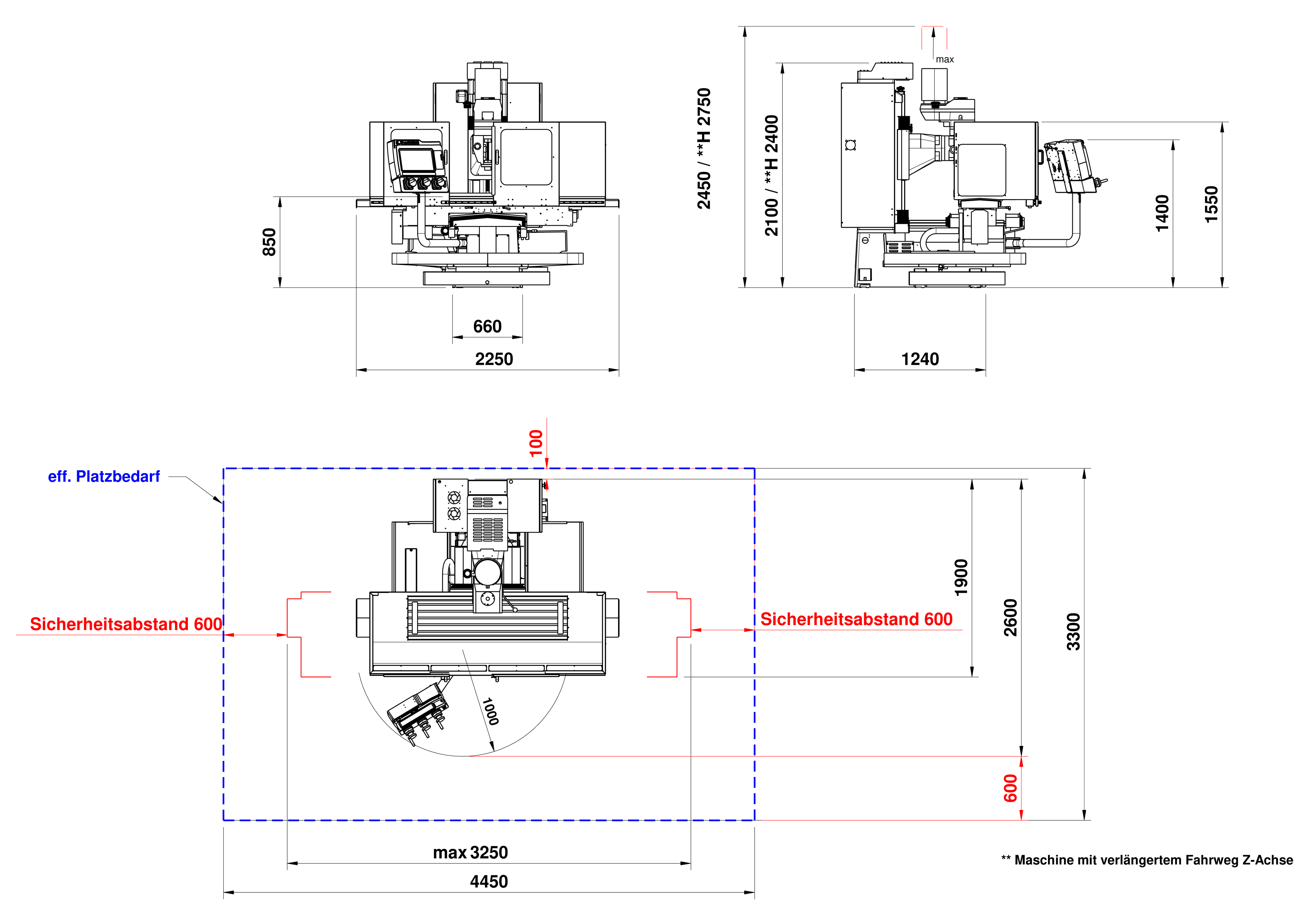 Abstand Tischmitte / Z-Führungsbahn 395 mm 445 mm 445 mm 445 mm 445 mm 550 mm