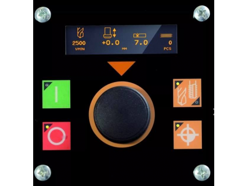 • Stufenlose Drehzahlregelung über mittigen Drehknopf